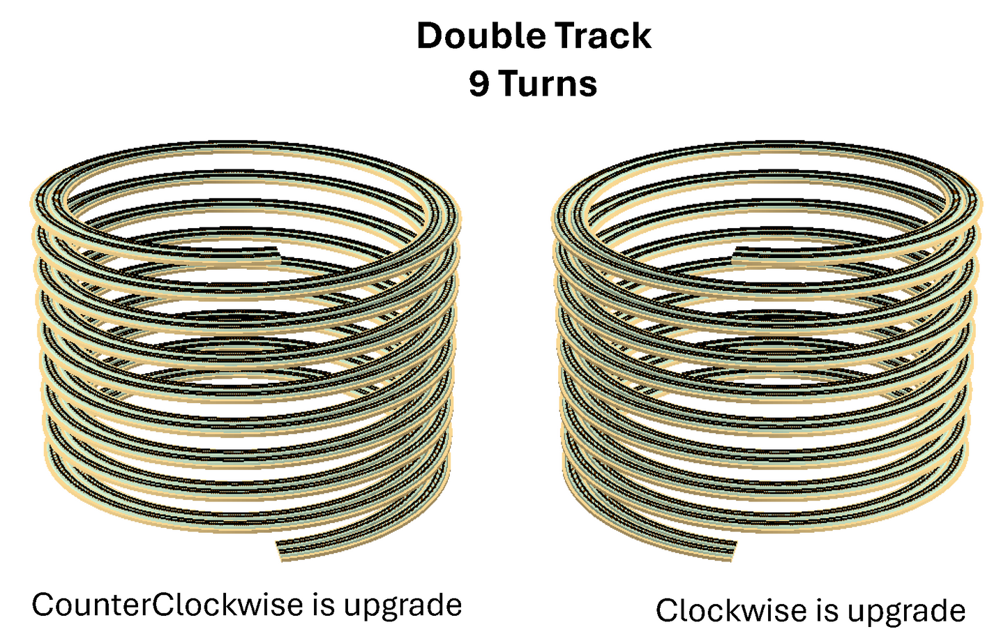 - Precision cut spacer block design includes designated spacer locations for strong support of every loop of the helix. Alternating space block locations (inside and outside of the helix deck) enables better access to all parts of the track for cleaning and maintenance.
