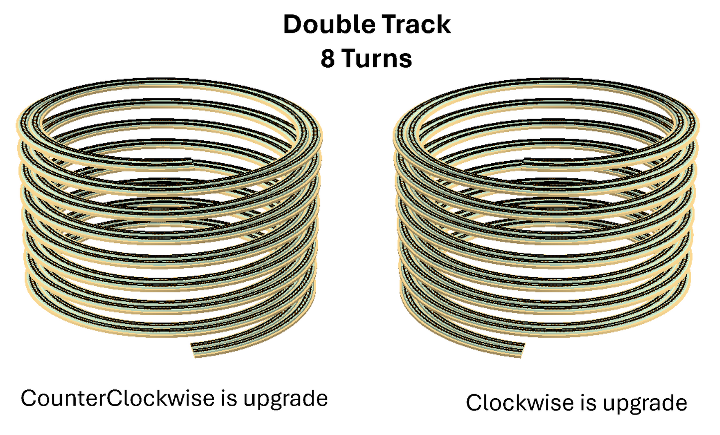- Precision cut spacer block design includes designated spacer locations for strong support of every loop of the helix. Alternating space block locations (inside and outside of the helix deck) enables better access to all parts of the track for cleaning and maintenance.